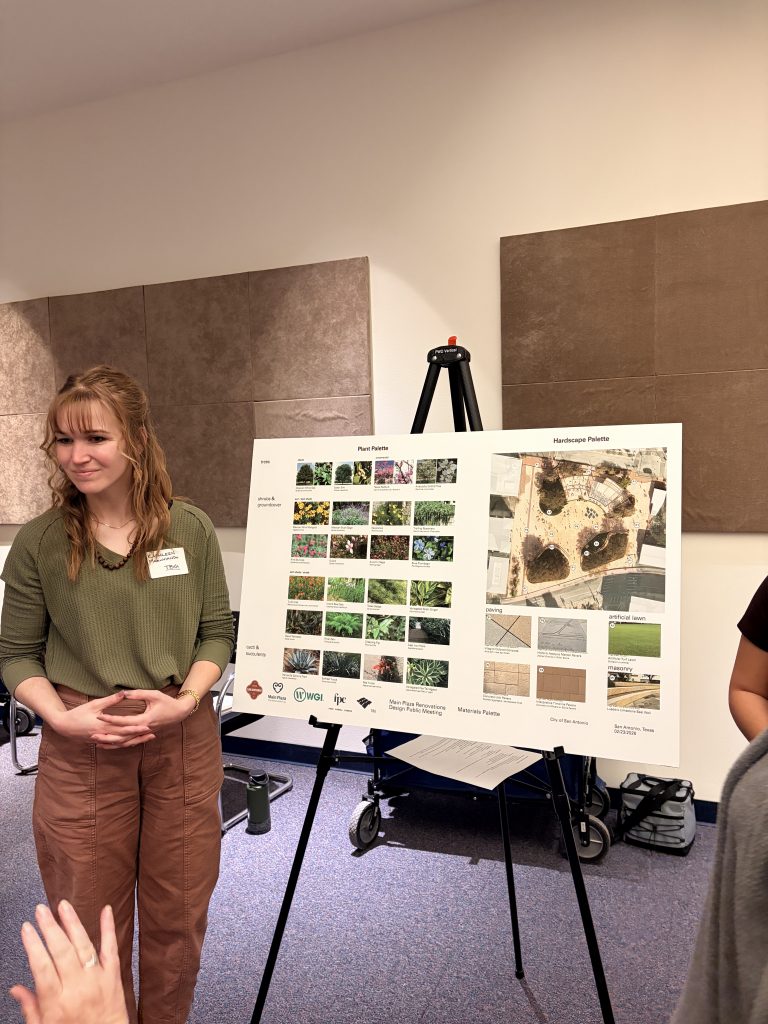 The staff and board of Main Plaza Conservancy extends deep gratitude to city employees and our architecture partners for organizing detailed visuals to help the public understand both the intention behind the project and full scope of plans. We also wish to thank the evening’s host location, San Antonio Public Library Central Library Branch, who offered gracious and accessible accommodations ensuring those that wished to participate could do so with ease.