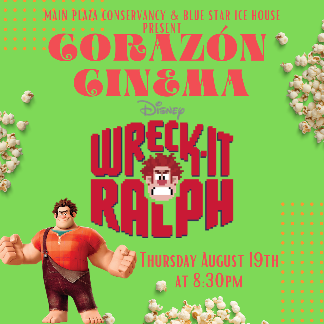 Main Plaza 115 N Main Ave,, San Antonio, tx, United StatesHang out at Main Plaza every Thursday with Corazón Cinema! Each film will start at dusk (approximately 8:30 PM). From throwback favorites to new Disney and Pixar cartoons there is something for everyone. Grab a cold drink with yummy treats from Blue Star Ice House, and enjoy warm summer nights while your favorite movies. At…