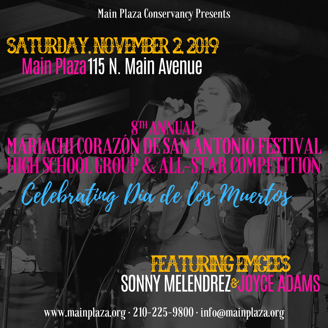 Main Plaza 115 N Main Ave,, San Antonio, tx, United StatesCelebrating Día de los Muertos! This festival features the very best of young mariachis in our own community. Come hear area high school groups compete for the title of "Best High School Level Mariachi in the San Antonio Area,” along with a cash prize for first place High School Mariachi. These young students will be…