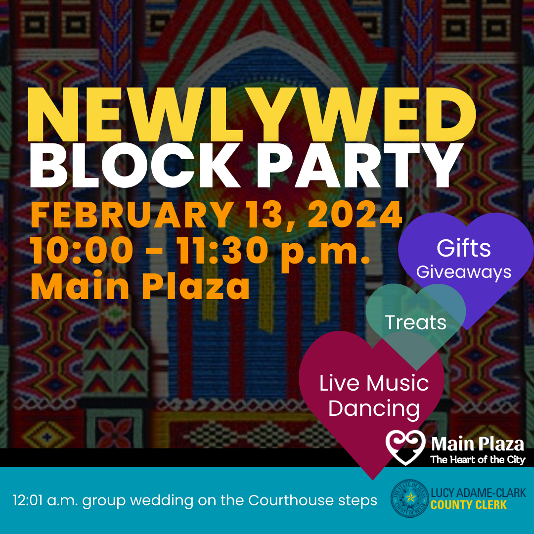 Main Plaza 115 N Main Ave,, San Antonio, tx, United StatesParty with the many folks who get married on the Courthouse steps at midnight! We're throwing a "Pre-ception", a wedding reception just before these sweet people take their vows on the courthouse steps! Expect a dance, prizes, cake, even an awkward toast or two. All celebrants who plan on getting married should have their marriage…
